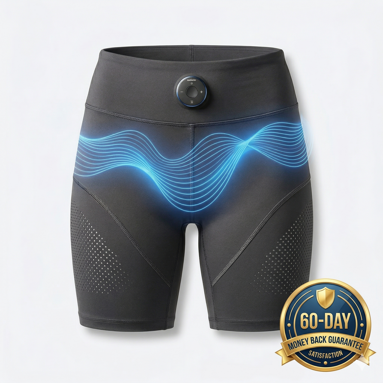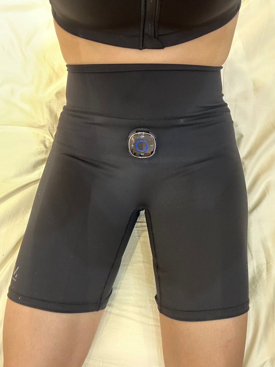 Slip on the shorts, choose your intensity level, and let Graceful Control go to work. No gel, no appointments, no complicated setup. The EMS unit immediately begins sending gentle pulses to your pelvic floor muscles.